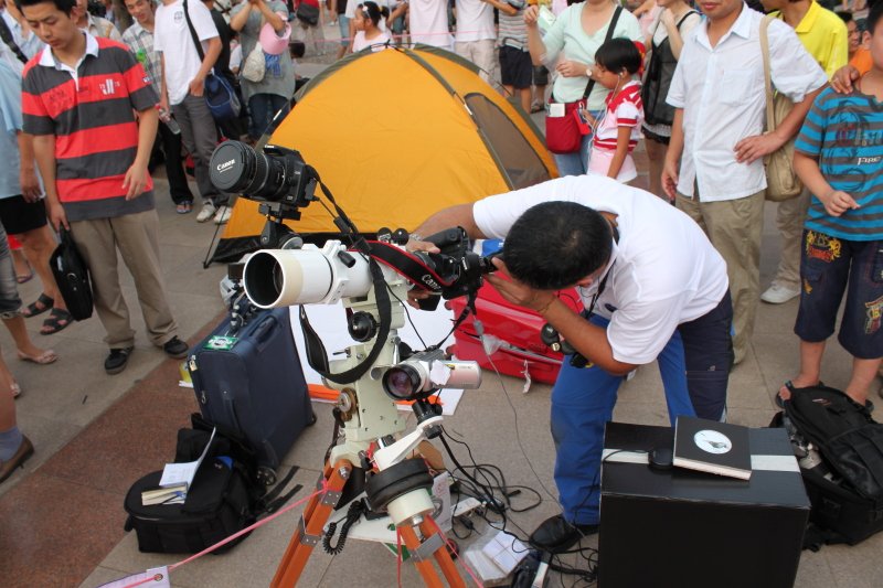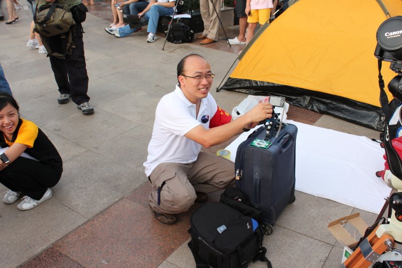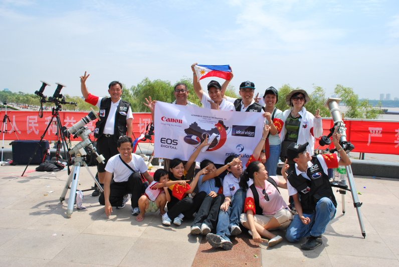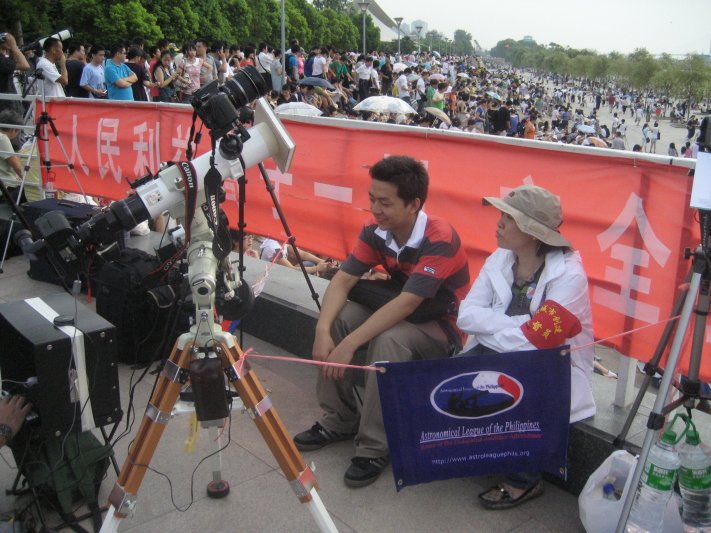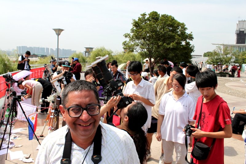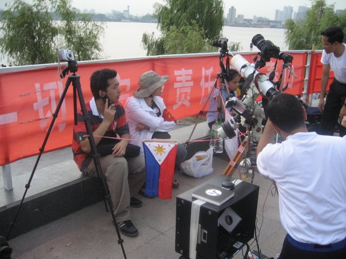The group decided to sit out the dinner that evening and get full rest as tomorrow they will have a whole day city tour of Wuhan. Unfortunately, ALPer Johnny Quinto and family has to cut short their Wuhan extra day for tomorrow because they decided that they needed to spend extra day in Beijing to see Great Wall of China in Badaling so they will be leaving tomorrow morning. They lose their extra day hotel as well as airplane flight but Johnny told James that is ok because they were able to experience the total solar eclipse and that was enough for them already. Overall, the group was very excited and happy as Christopher Go called James and informed them hat they missed the time between 2nd contact and was able to see the 3rd contact dot of light coming out of the clouds :( They were able to image the rest of the duration though. News reporters told James that Shanghai was totally clouded and rained out and without any contacts with ALP Jiaxing group led by Edwin Aguirre and Imelda Joson, they could just pray and hope they were able to capture the totality as well as they are leading a big group of eclipse chasers for Astronomy magazine so most probably being more of a professional eclipse tour group, they were even equipped and more mobile than the Wuhan group in terms of logistics. MORE E-DAY ACTIVITY IMAGES CAN BE SEEN BELOW