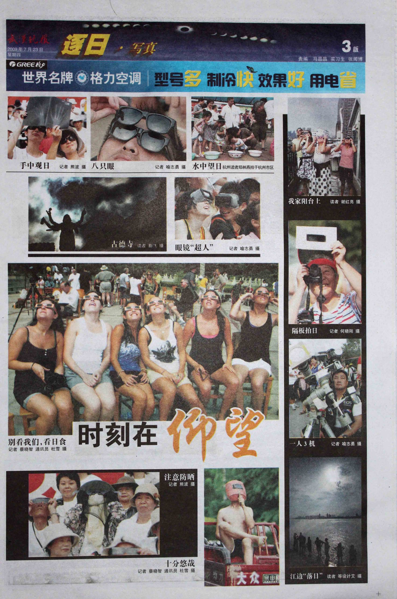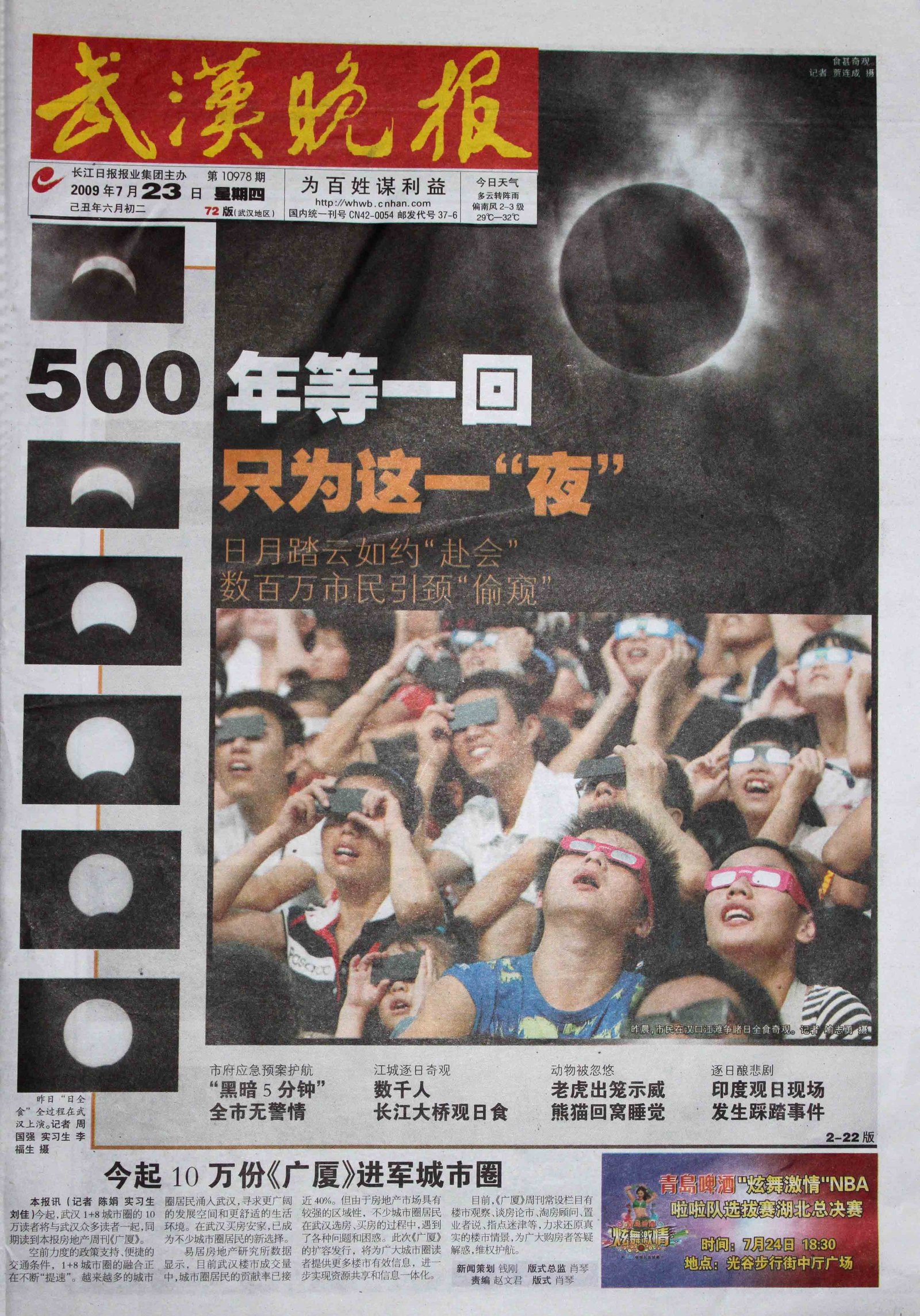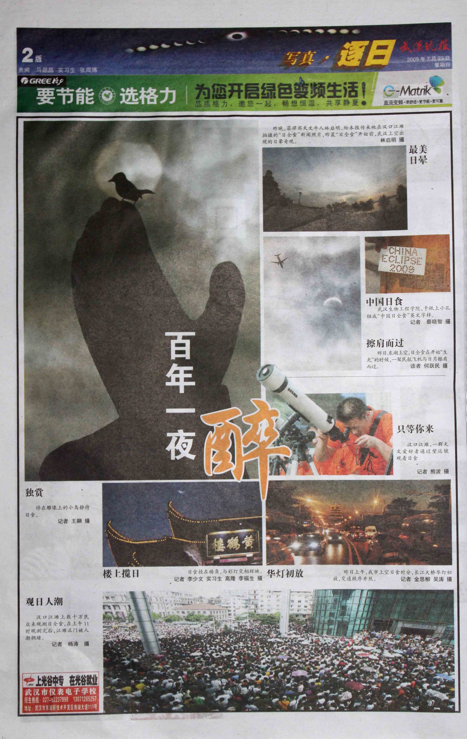 After their visit at Yellow Crane Tower, weather suddenly turn cloudy and rained very hard and they were glad that the bad weather didn't arrived yesterday or else they could have missed the eclipse totally like what happened in Shanghai area. With only one more place to visit before most of the tourist spots closed at 5:30pm, they opted to visit the Wuhan Zoo to at least get a glimpse of the 2 giant pandas that were housed there after the great earthquake that struck Sichuan province in early part of last year. The Panda Research Center in Sichuan breed and housed more than 40 Pandas in their facility but due to the quake, they were forced to transfer most of the Pandas out of the facility to nearby cities of China. The two Pandas in Wuhan Zoo were named Shin Shin and Xie Wang (Hope). They were able to see the two Pandas but because the facility is already closing, they got to view it as well as view a few animals such as peacocks and tigers only. One interesting observation of the Pandas is that aside from aircon and electric fan in the cage, two large ice blocks can also be found to help the Pandas bear the heat in Wuhan :0 They then went back to the hotel after the zoo visit and get some rest as well as go to the newsstand to get the latest news on the total solar eclipse and again in the for the third day, ALPers got to get featured in the Wuhan Evening Post with ALP Wuhan TSE team leader James Kevin Ty 's fisheye shot of the Sun Halo at sunrise being featured on page 2 as well as one more image of James with his eclipse setup entitled " One Man with 3 Cameras." That evening, it was ALP VP Jett Aguilar's turn to treat the team members for a job well done as well as celebrate his belated birthday blowout :) It was another good fine dining before they wrap up their expedition trip tomorrow.